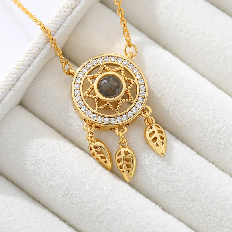 Ожерелье женское с проекцией Я люблю тебя на золотых цепочках, 100 языков