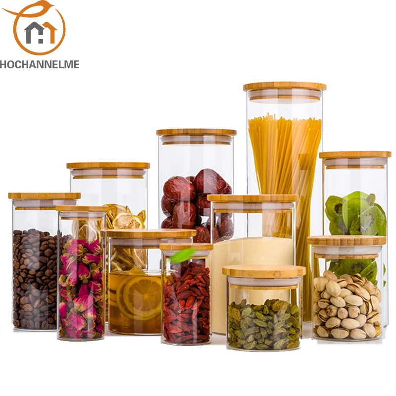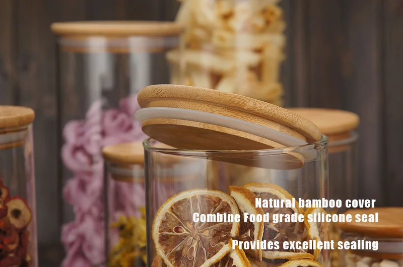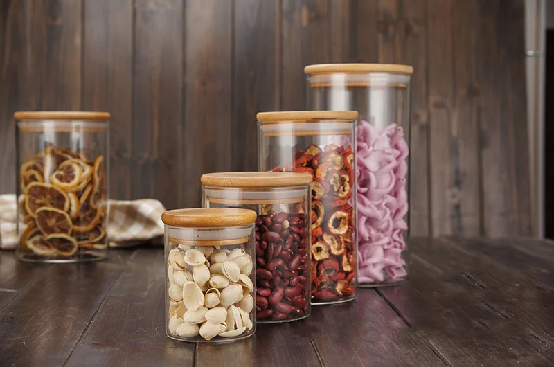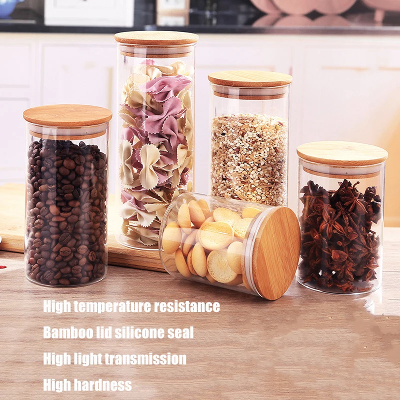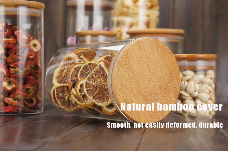 Кухонные банки для хранения продуктов, прозрачные стеклянные банки с бамбуковой крышкой, герметичные банки, банки для специй, коробка для конфет, кухонная банка для хранения