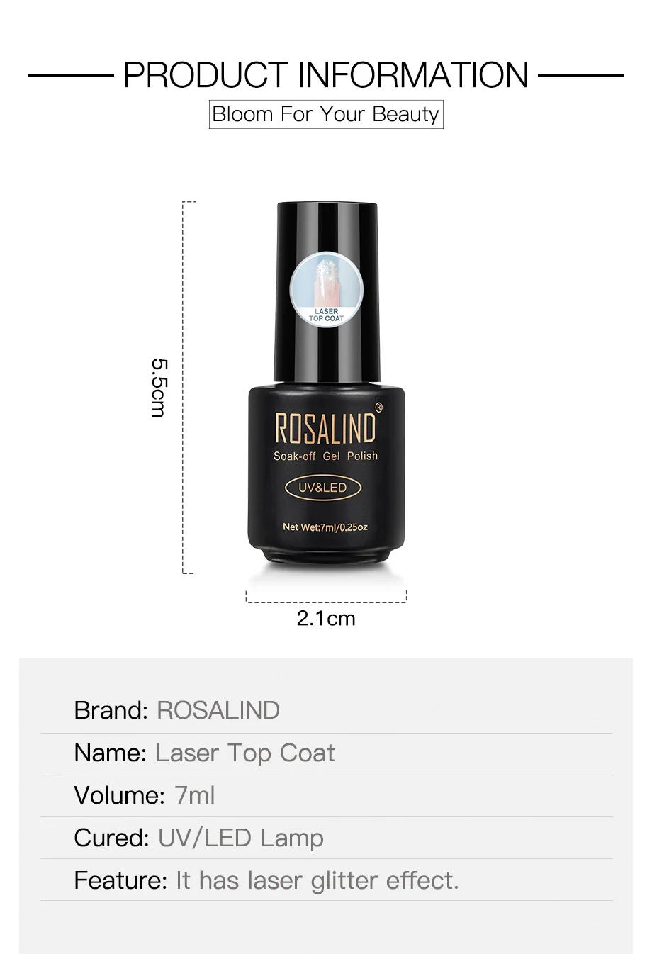 ROSALIND лазерное верхнее покрытие Гель-лак яркий для дизайна ногтей LED/УФ-лампа