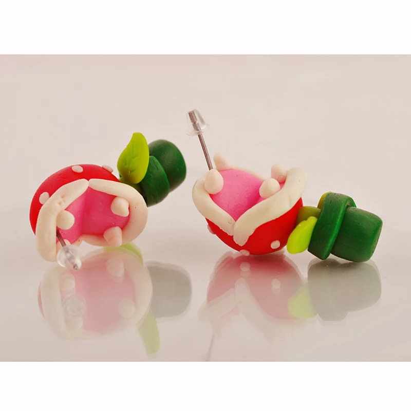 Серьги-гвоздики женские из полимерной глины, Супер Марио, Пиранья, труп, цветок, забавные Креативные украшения