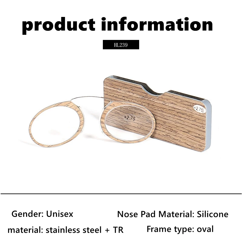 Деревянные мини очки для чтения зажим для носа Мужской портативный из нержавеющей стали Ретро ультра светильник для дальнозоркости очки для женщин Tr90 Gafas + 275