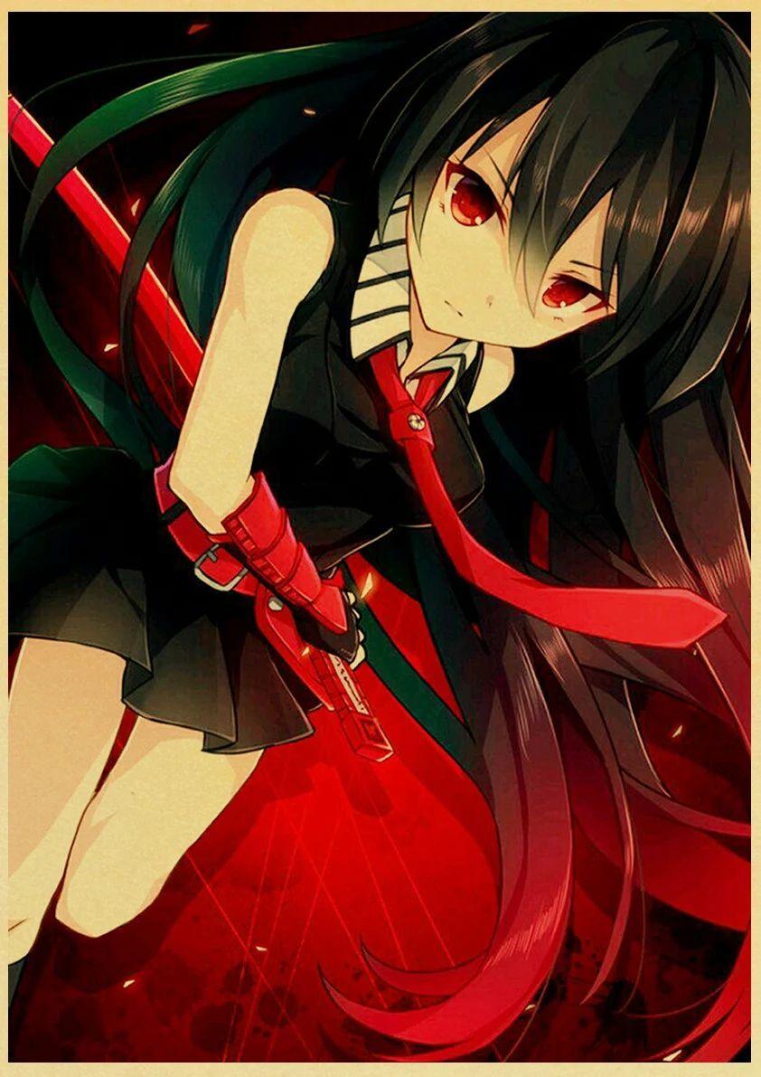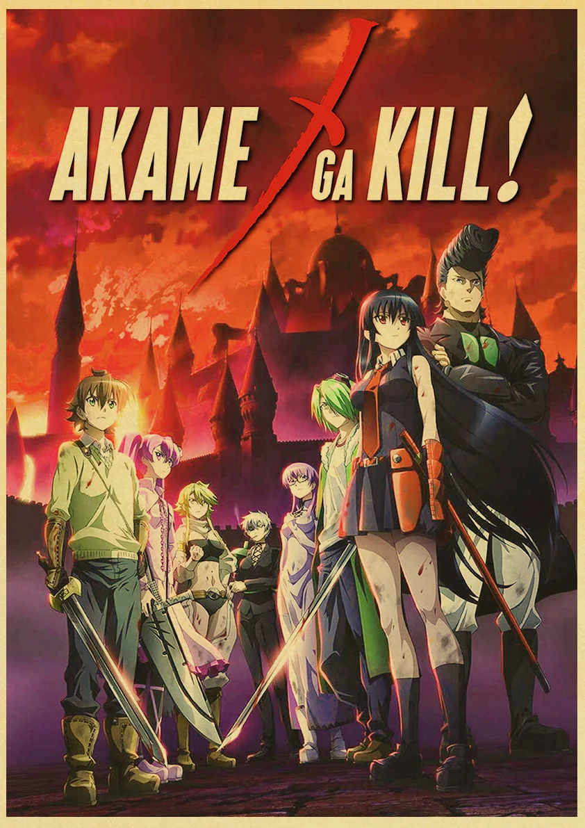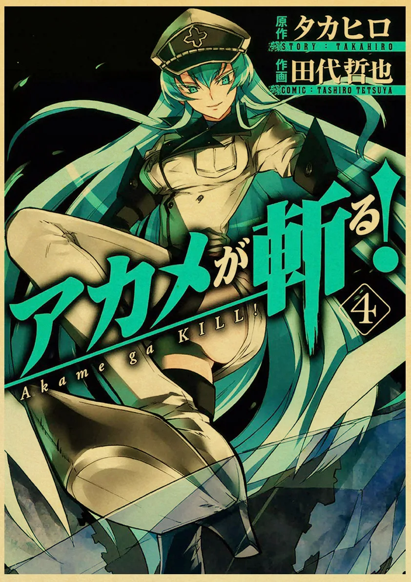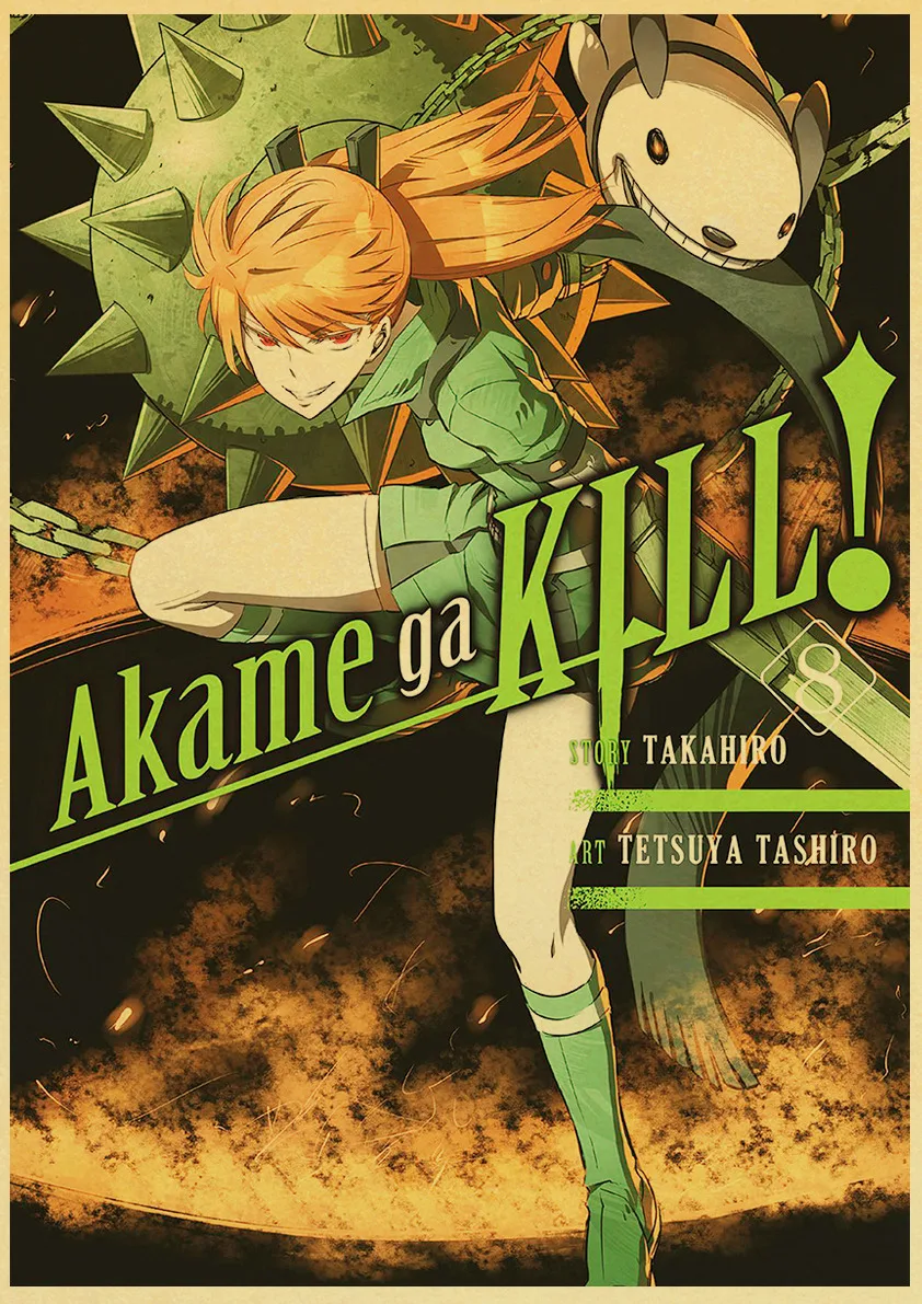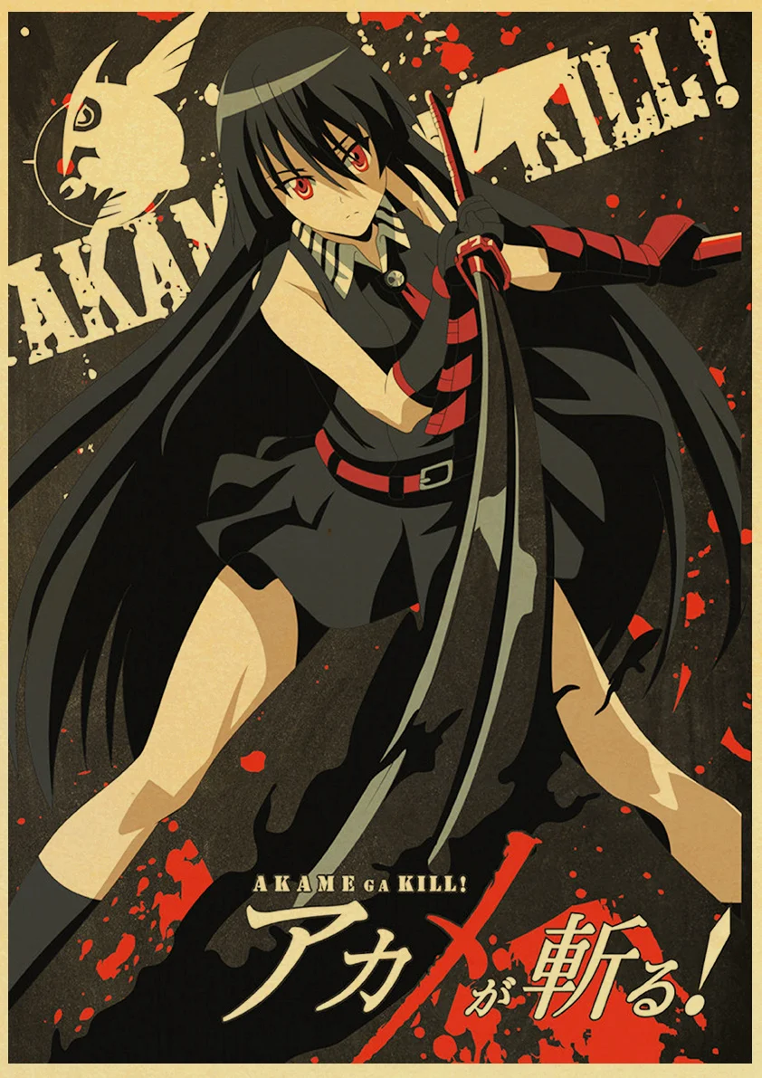 Винтажный постер Akame ga KILL, классические японские аниме плакаты и принты, настенная художественная картина для комнаты, домашний декор, крутые наклейки на стену
