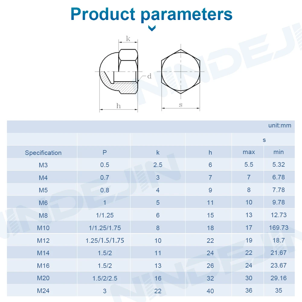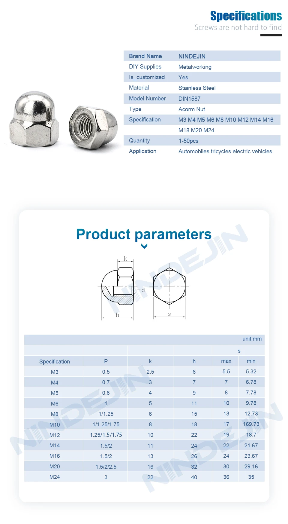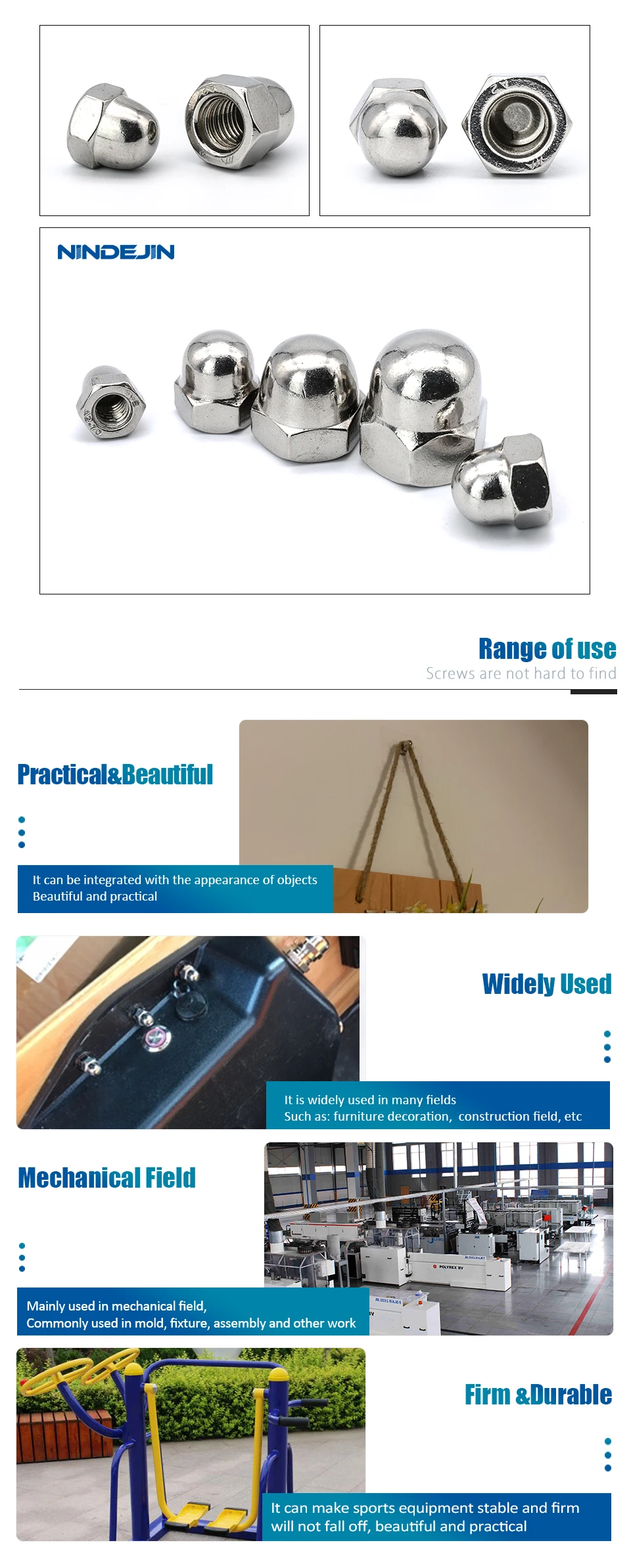 Колпачковая Гайка NINDEJIN, M3 M4 M5 M6 M8 M10 M12 дюйма, M14, M16, M18, декоративная Колпачковая гайка из нержавеющей стали, глухие гайки