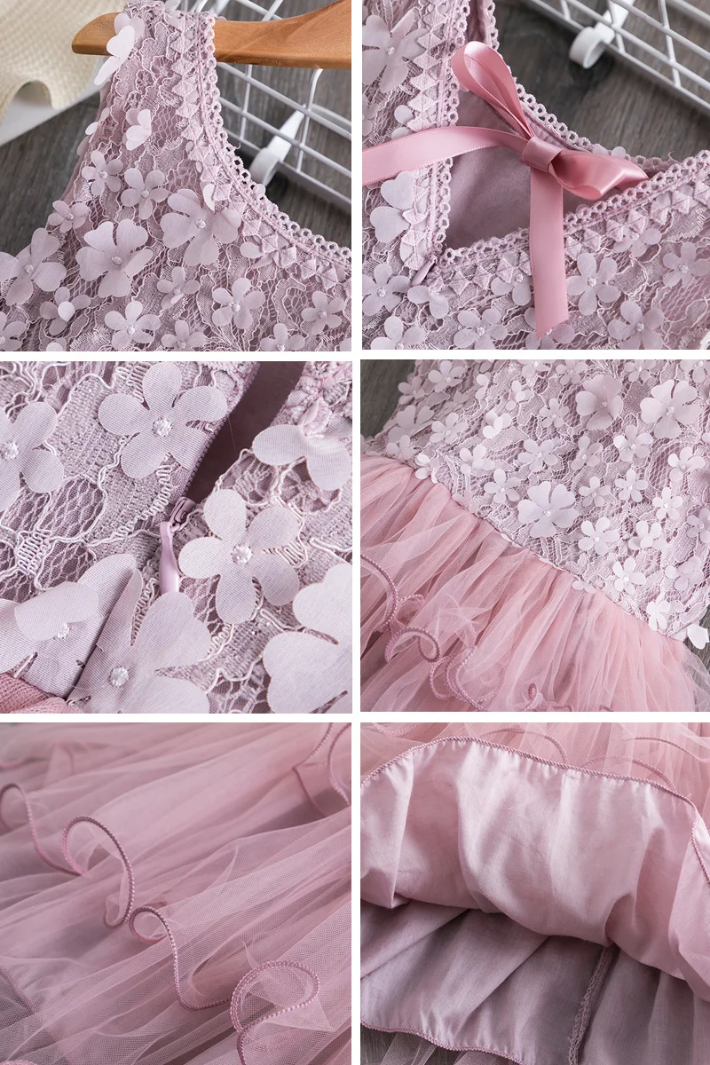 Детское кружевное платье без рукавов, летнее Сетчатое платье с цветочным принтом для девочек 3-8 лет