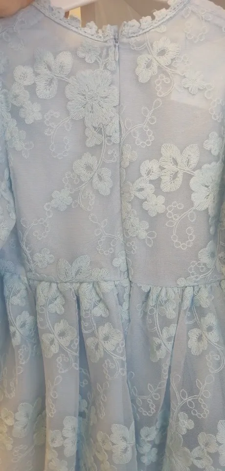 Платье cudowna, аккуратно сшито, не торчащая пряжа и не имеет неприятного запаха, очень быстрая доставка, как рекомендуется, размер 6T для платья widnieje 130 для очень dziewczynke noszaca 122 длиннее и ciut troszke широкий, но SA tasiemki для переплетения :)
