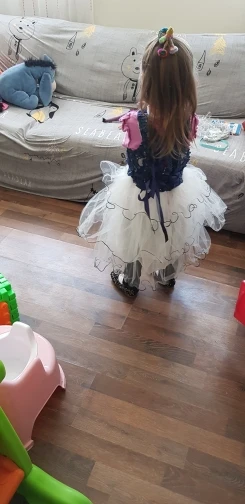 Юбка не такая пышная как на фото, но в целом все отлично. сзади вырез и ленточки, очень мило. Вернётся дочь из сада применим, дополню отзыв. Но мне все нравится.