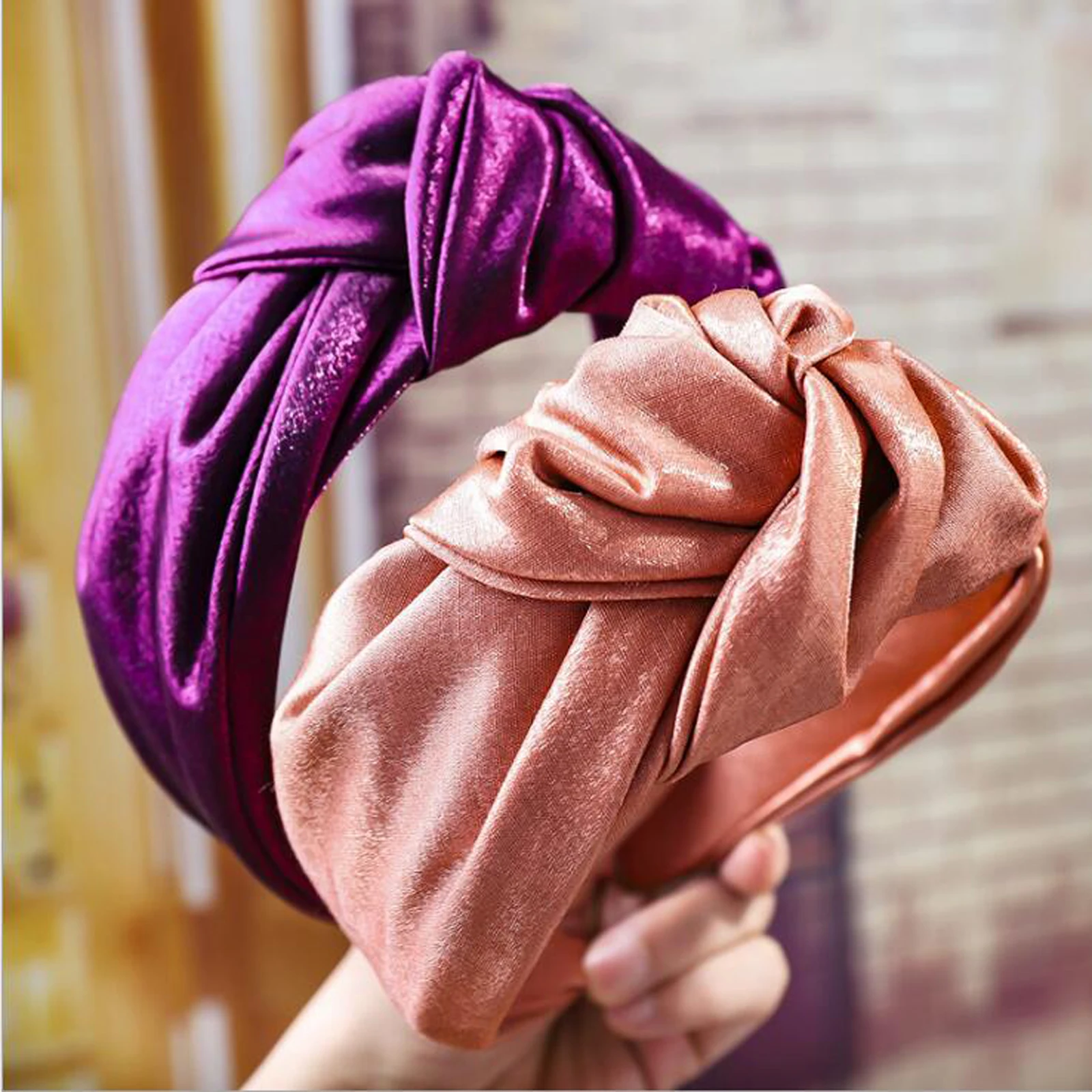 Обруч для волос, широкий, с блестящей тканью, классический, для взрослых