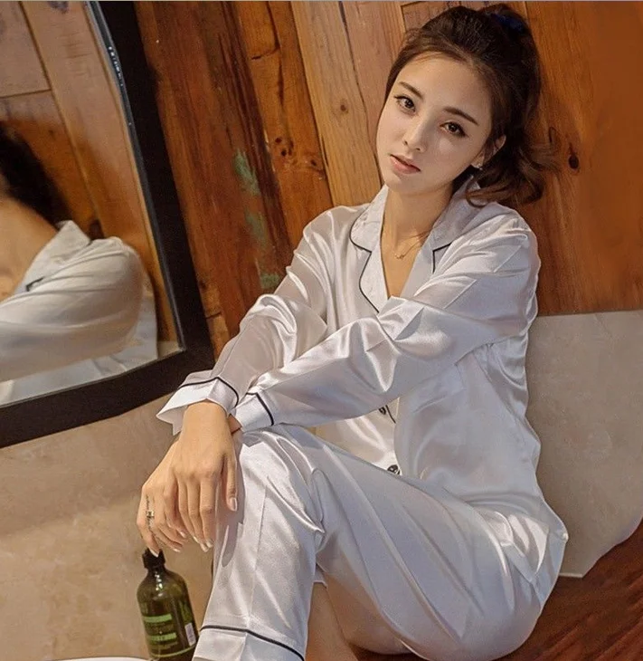 Пижамный комплект мужскойженский атласный из 2 предметов, шелковая супермягкая пижама с длинным рукавом, одежда для сна в стиле унисекс, домашняя одежда, ночное белье, пижамные комплекты