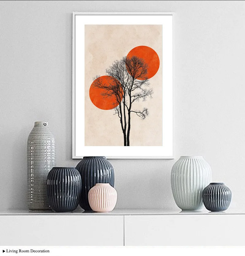 Скандинавское украшение, Картина на холсте, рассвет, дерево, поле, ...