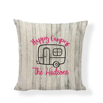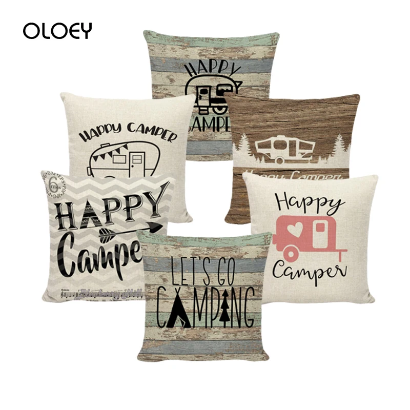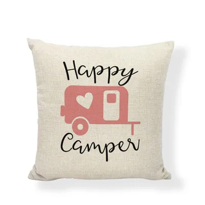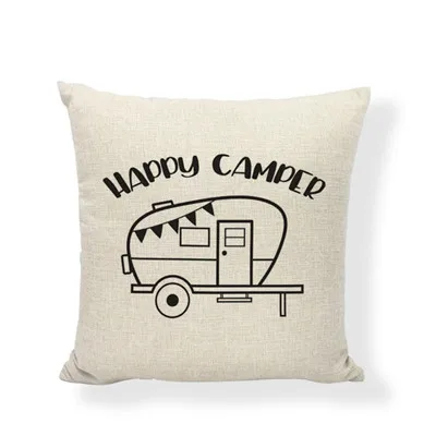 Счастливый кемпинг, искусственная льняная наволочка с принтом, автомобильное безопасное сиденье, домашнее сиденье для комнаты, декоративная наволочка 45x45 см.