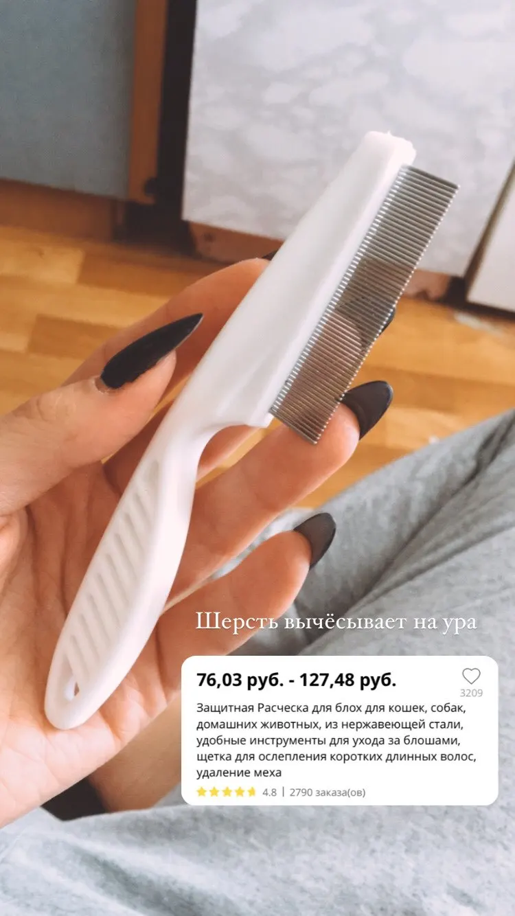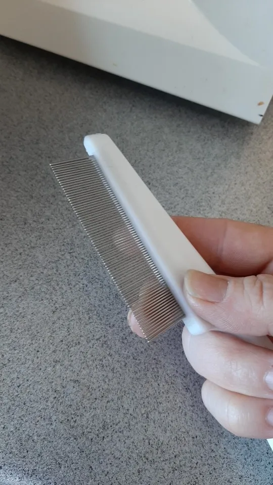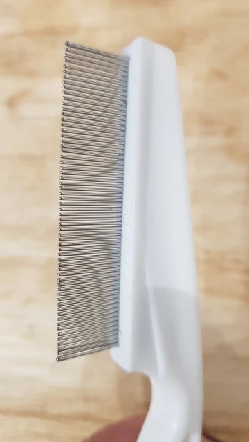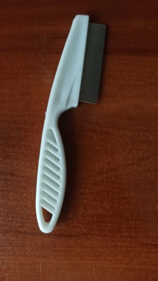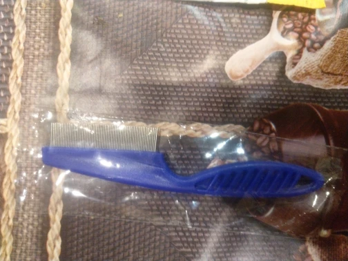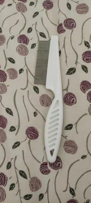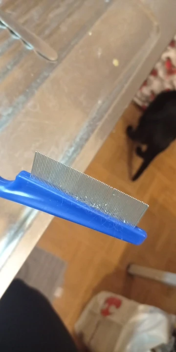 прикольная штучка,шла посылка почти 2 месяца.частично отслеживалась.зубчики мелкие,по моему мнению даже слишком,но на это и расчет.у моих котиков блох нет,но шерсть вычёсывается, правда работка такой расческой крапотливая