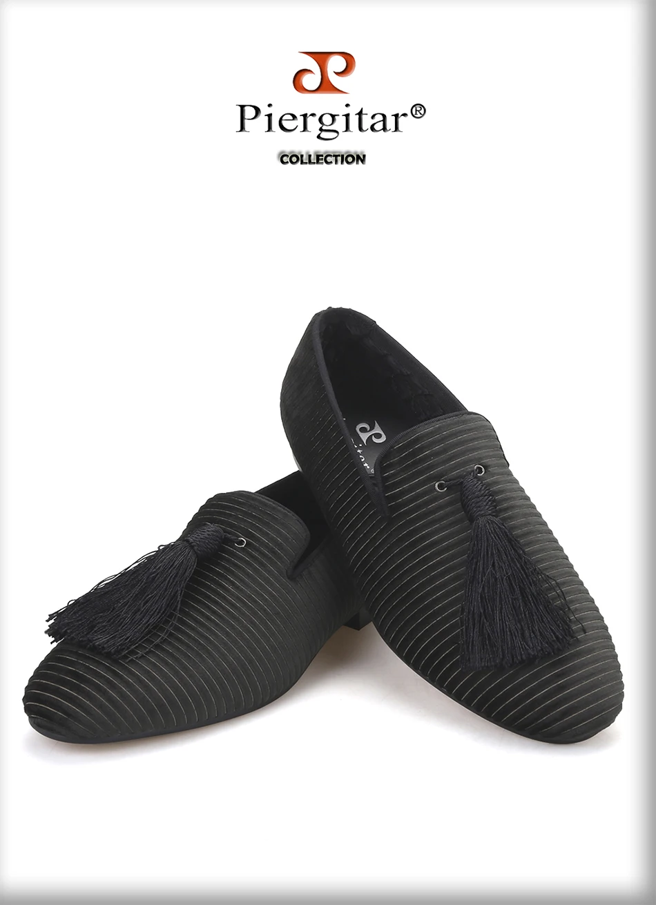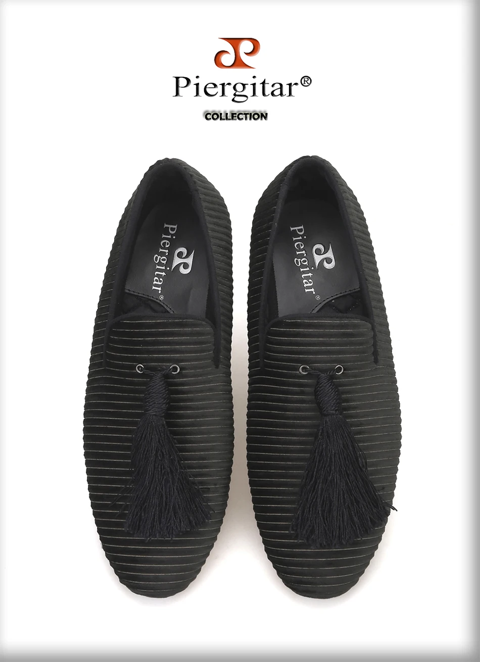 Лоферы мужские Piergitar, из хлопка, коричневые, в полоску, с кисточками, ручной работы, повседневные, для вечеринок и свадеб
