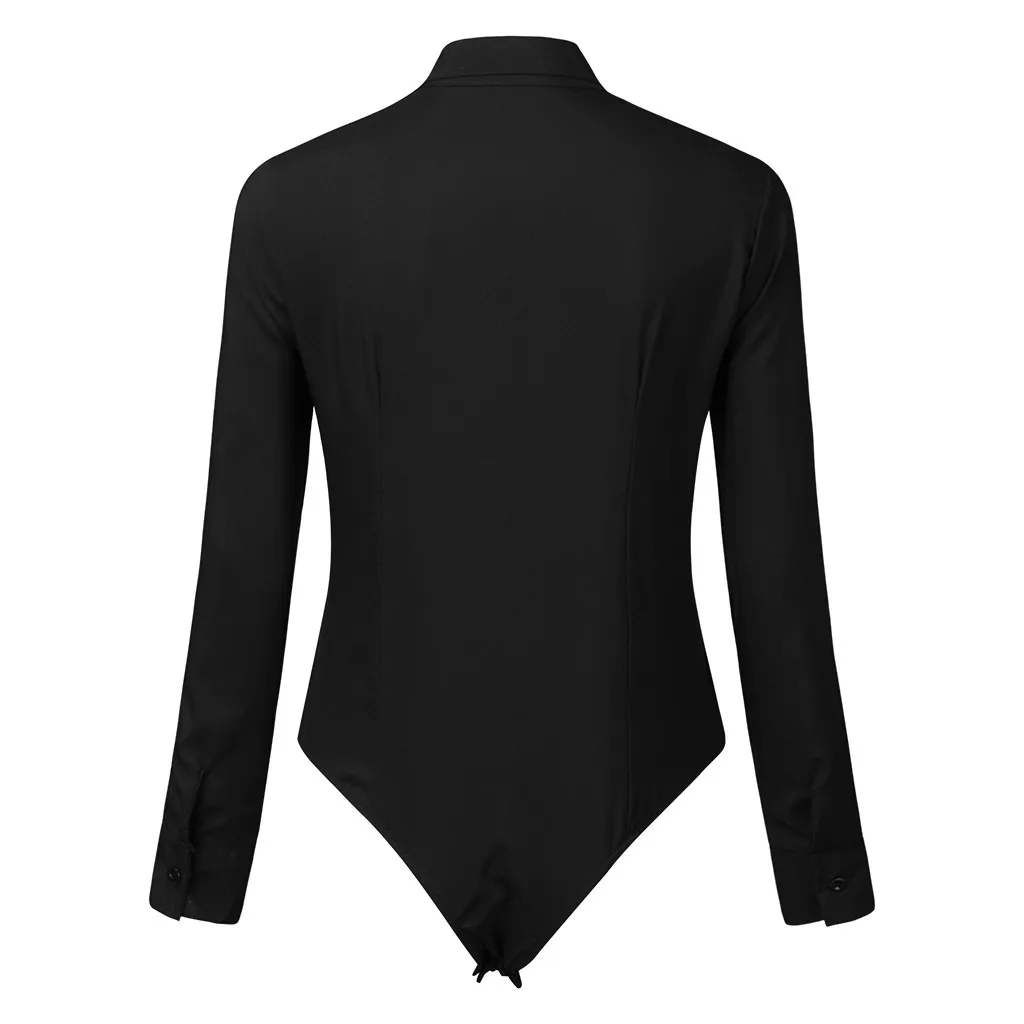 Женские облегающие боди в деловом стиле с длинным рукавом и пуговицами, короткие комбинезоны, боди черного цвета, femme manche longue #4