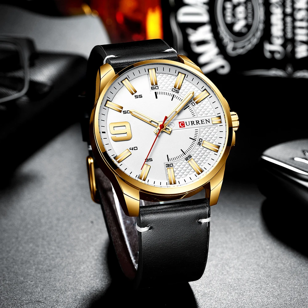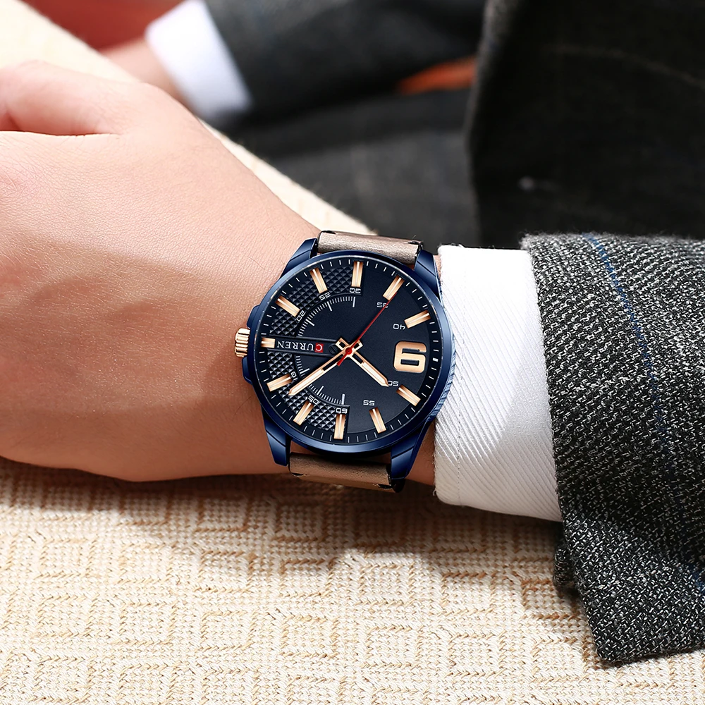 Часы CURREN Мужские наручные кварцевые, брендовые деловые модные в стиле милитари, с кожаным ремешком