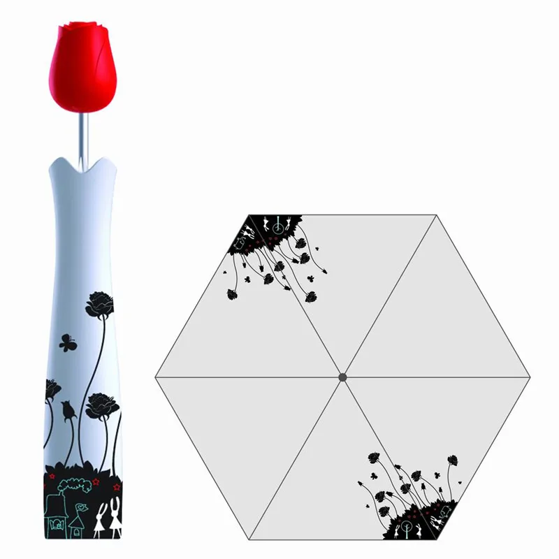 Женский складной зонтик в виде Розы, плоский легкий креативный зонт...