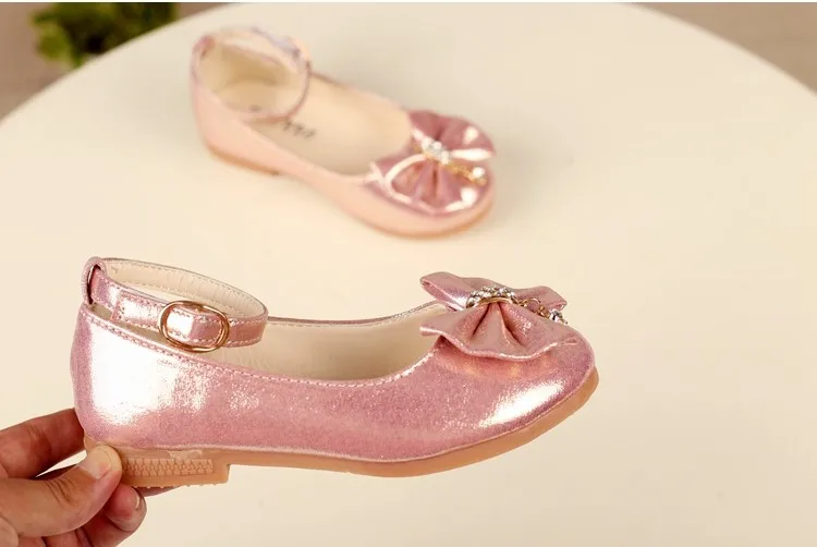Кроссовки Детские с бантом, кожаные, с жемчугом и бриллиантами, детская танцевальная обувь, на осень