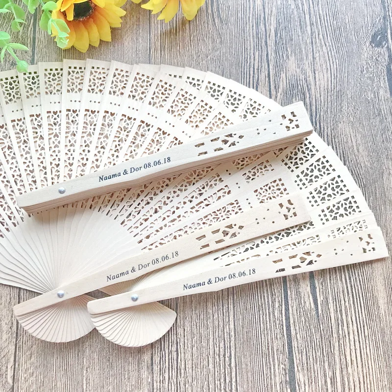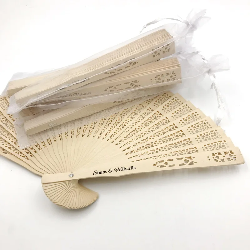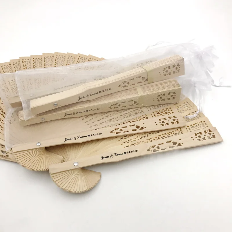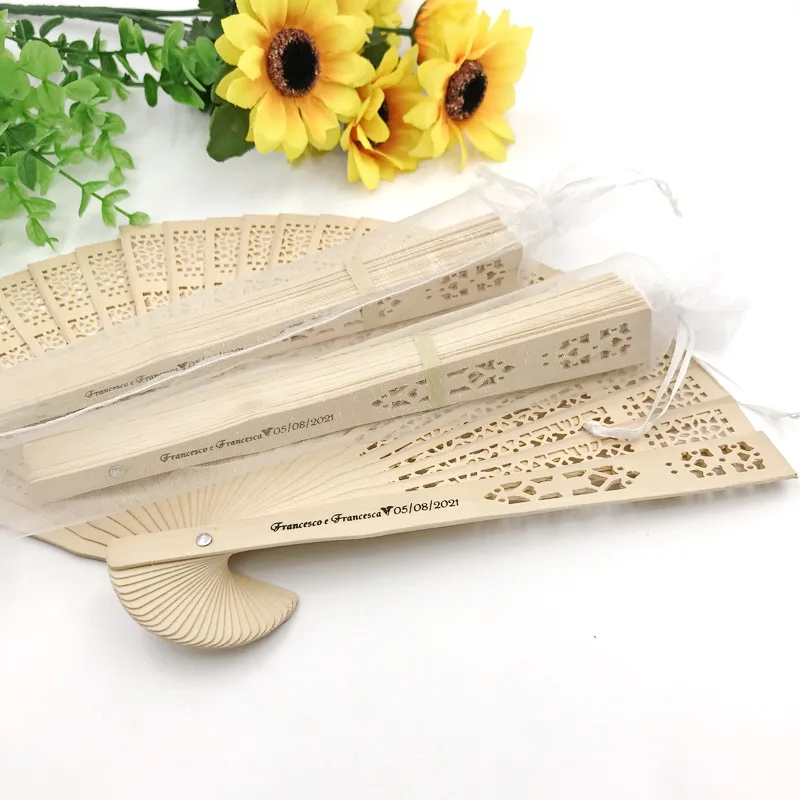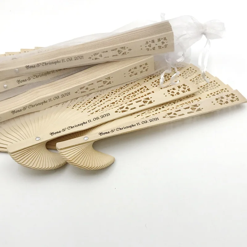 150 шт. Персонализированный Деревянный Карманный складной Ручной Веер с сумкой из органзы индивидуальная печать Натуральный Деревянный свадебный веер украшения для вечеринки