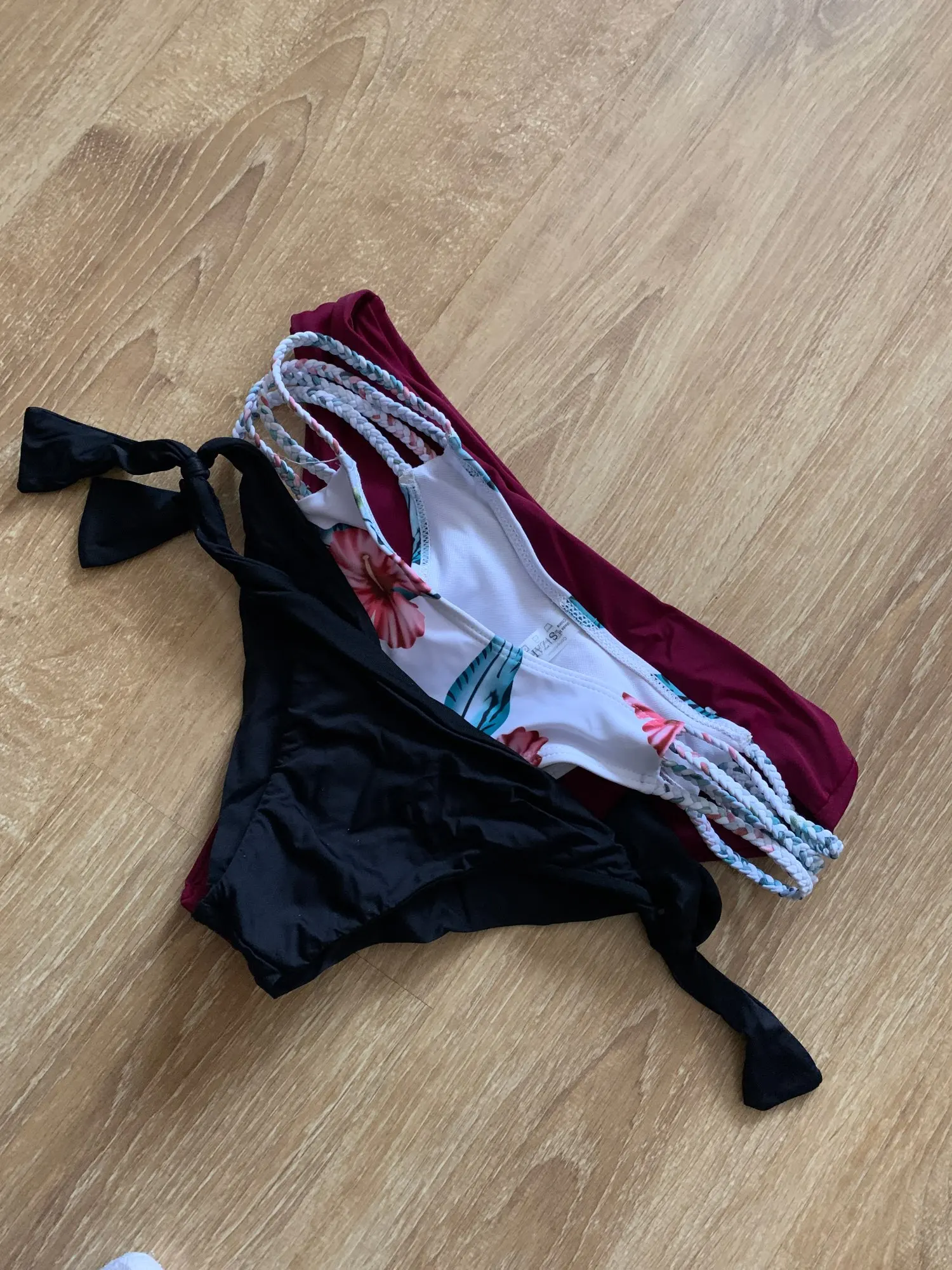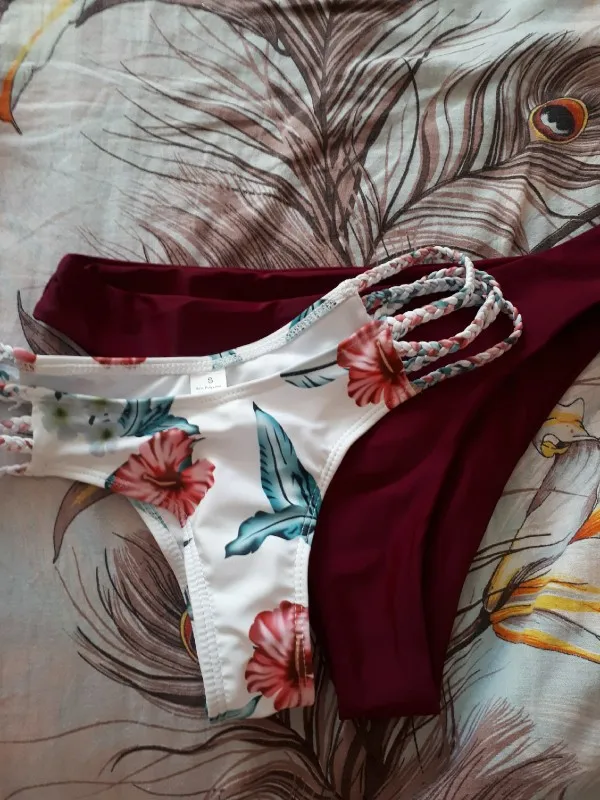 Заказ пришёл за 2 недели. Качество очень хорошее. На объем груди 87,брала М. Все подошло. Плавки белые больше похожи на танго, винные, хоть и пишут, что они больше, мне кажется очень даже ничего. Кто любит, чтобы попа была наоуже, то белые в самый раз. В обще оба варианта хорошие.