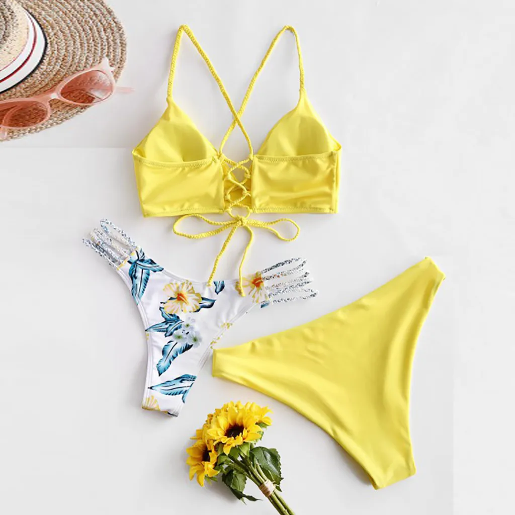 Комплект из трех предметов, бикини пуш-ап, однотонный пляжный купальный костюм, бразильский бюстгальтер + стринги, # Z3, 2020, женское микро-бикини