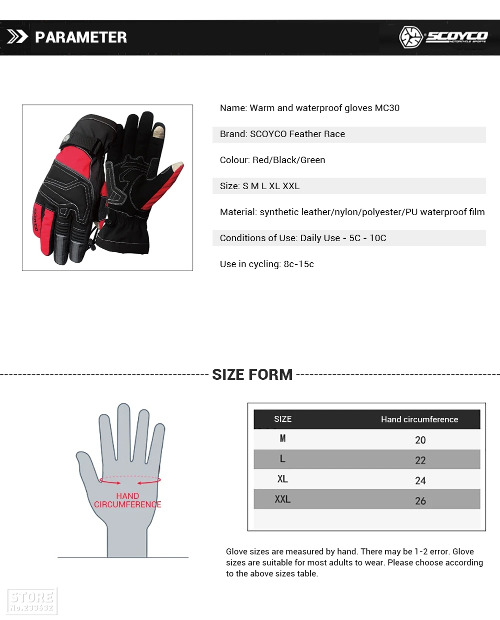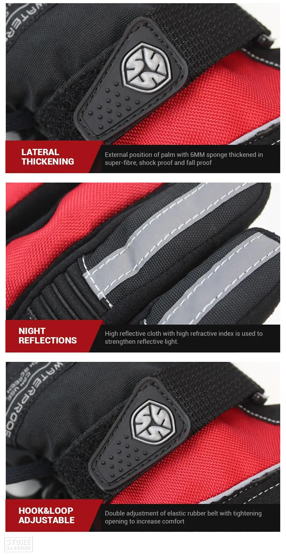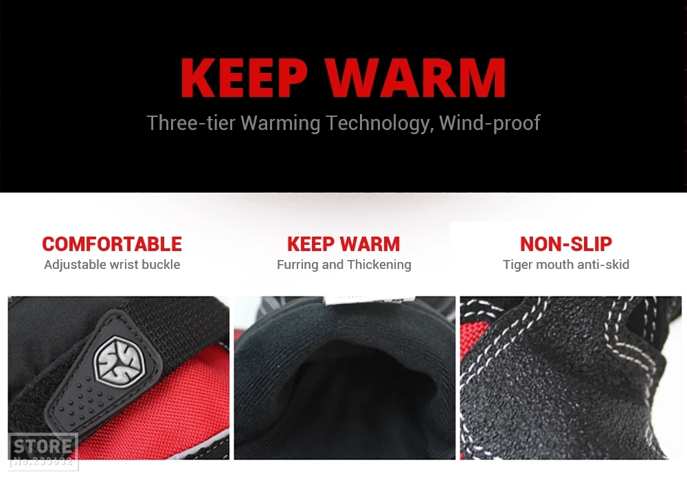 Особенности:100% полная защита: жесткий пластик защита сустава, Силиконовый протектор для пальцев и Многослойный материал ладони, защищают руки от ударов и истиранияПлотное прилегание и хорошее сцепление: защитные перчатки очень приятные и плотно прилегают, как только вы их наденете, не имеют дополнительной массы в кончиках пальцев, или в ладони. Противоскользящий резиновый материал в ладони обеспечивает хорошее сцепление без сужения мышц рук, хорошо подходит для длительного вожденияТеплый и ветрозащитный: подкладка с мягким сенсорным слоем, длинная манжета, полная ветронепроницаемость, регулируемый затягивающийся пояс для запястья, сохраняет руки в тепле во время быстрой езды в Зимние холодные дниВодонепроницаемый: Эти мотоциклетные перчатки для рук водонепроницаемые, без проблем катаются несколько часов под обычным дождем или даже один час под сильным дождем, Всегда держите руки сухими и теплыми в холодную погодуФункция сенсорного экрана: Встроенный специальный материал на указательный палец, позволяет использовать мобильный телефон, не нужно снимать перчатки в холодные дни