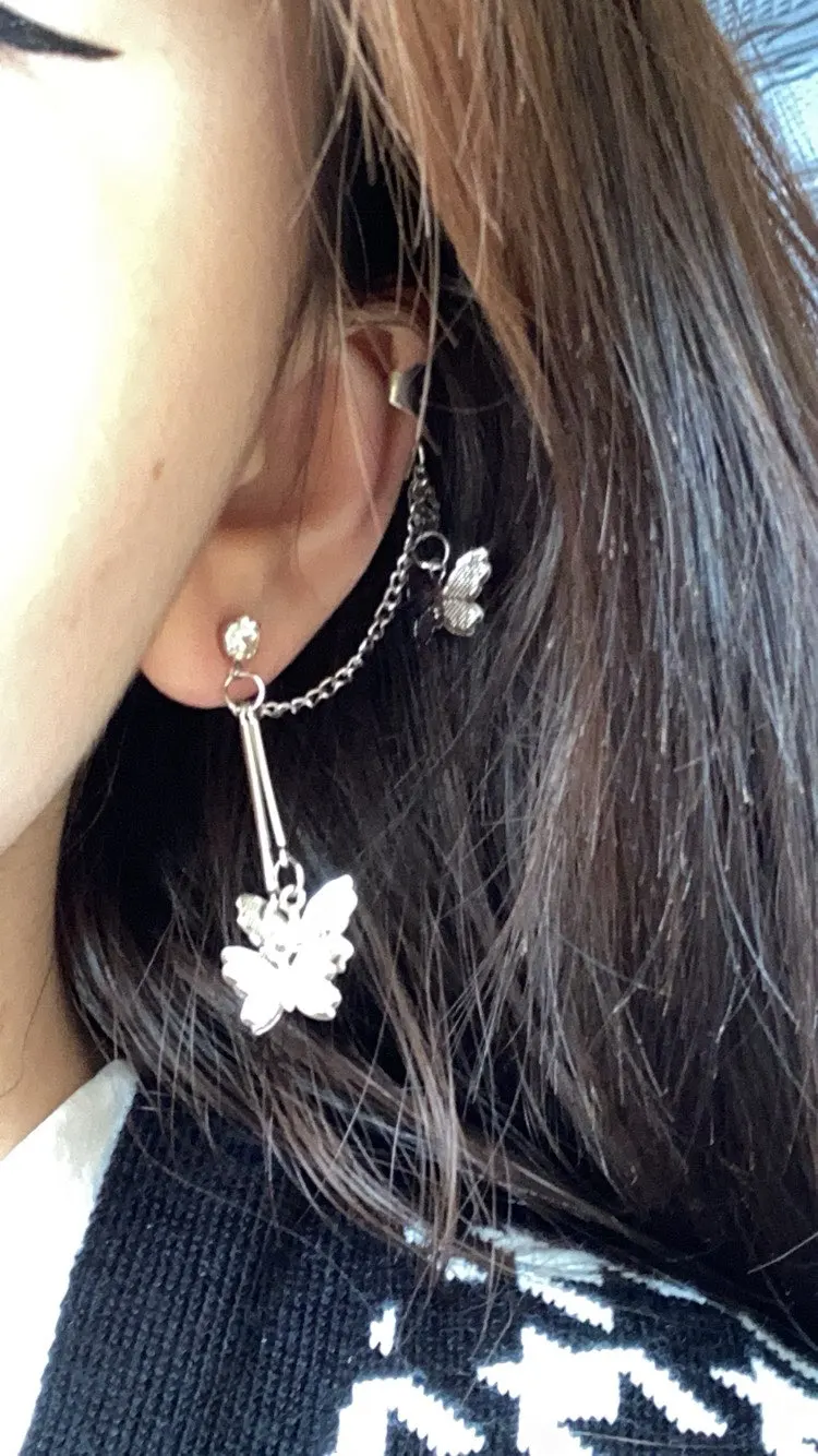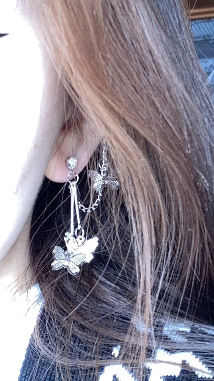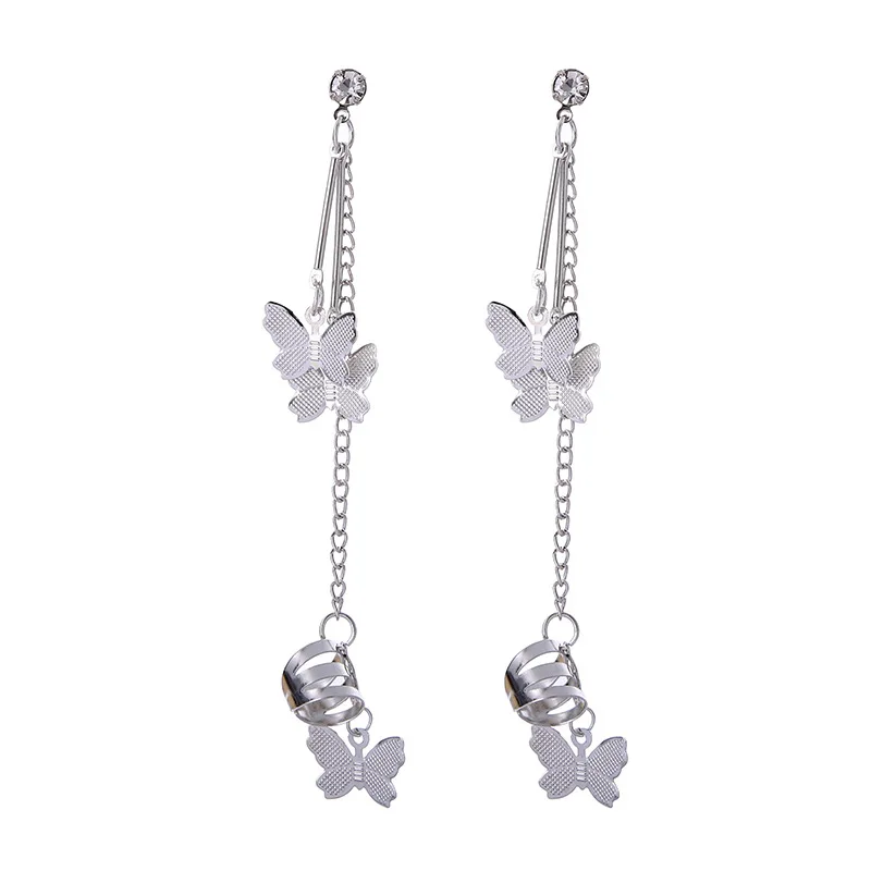 Серьги-гвоздики женские, корейские, с бабочками и кисточками