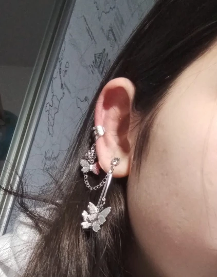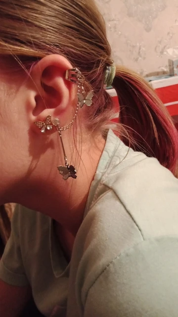 Сережки качественные, бабочки хоть на вид хрупкие, но достаточно прочные Ещё момент, если вы часто заправляете волосы за ушли, то штучка которая как клипса держит верхнюю часть сережки, будет невольно опускаться и цепляться за палец Но впрочем меня все устроило Пришло быстро