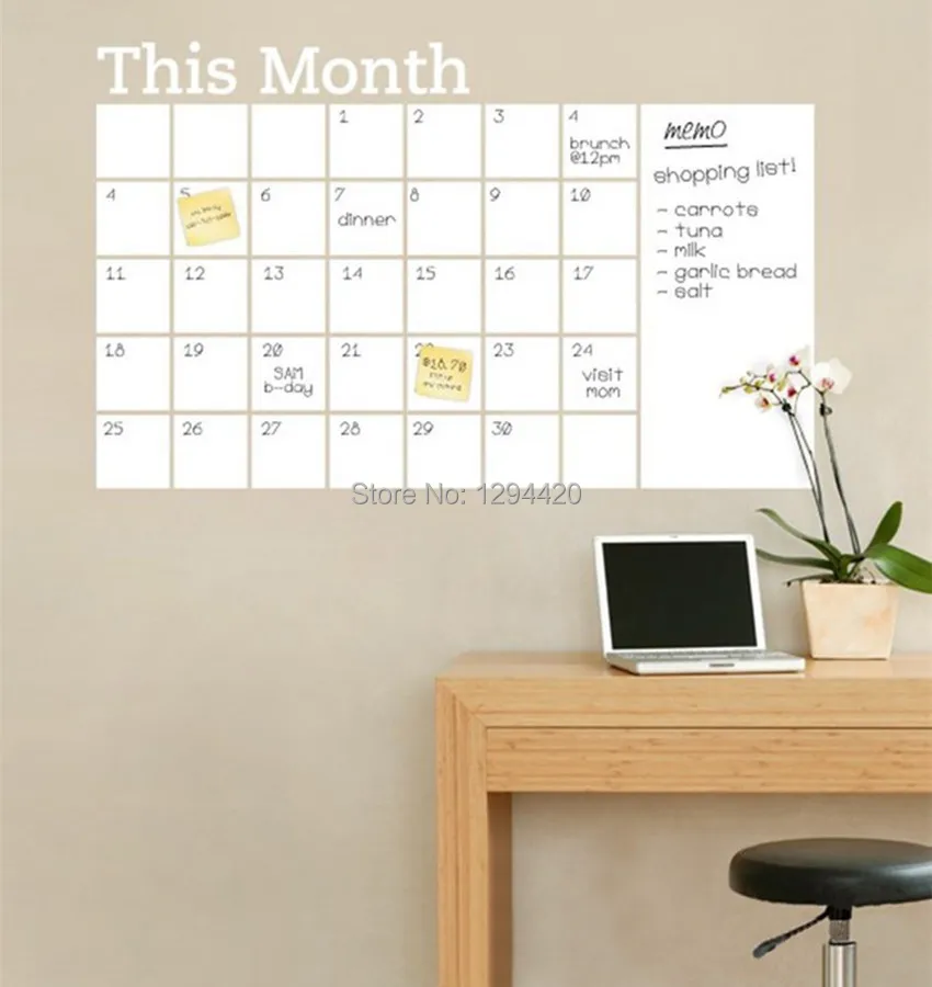 Стираемая белая календарь на доске обои в этом месяце Блокнот наклейки на стену для дома и офиса Маст-хэв виниловые доски 92*60 см