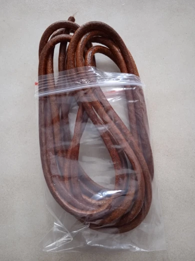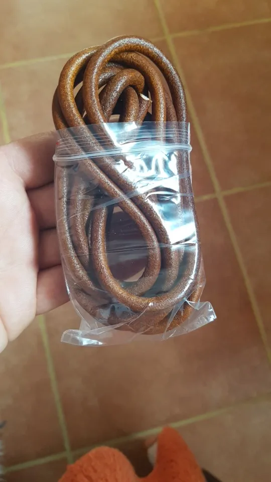 Шнурок пахнет затхлостью, не кожей совсем. Но сделан из кожи. Дошел очень быстро, по сравнению с другими посылками. Когда я его намочил, то шнурок рассыпался на фрагменты по 10- 50 сантиметров.