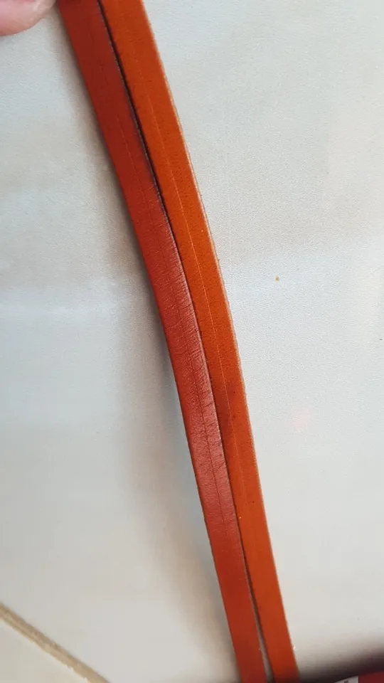 Не настоящая кожа, шнур, который я получил, сделан из скрепленных кожаных волокон, приклеенных к пластиковой обложке. Отделка может показаться убедительной на расстоянии, но ощущается подделкой на ощупь.