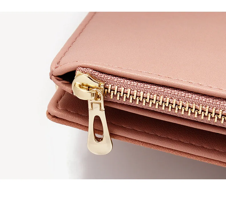 Одноцветный мини-кошелек с застежкой для карт, женский модный короткий кошелек из искусственной кожи на молнии, повседневный кошелек с отделением для кредитных карт, кошельки