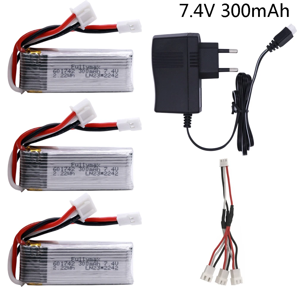 Аккумулятор LiPo 7,4 в 300 мАч 3 шт., батарея с USB зарядным устрой...
