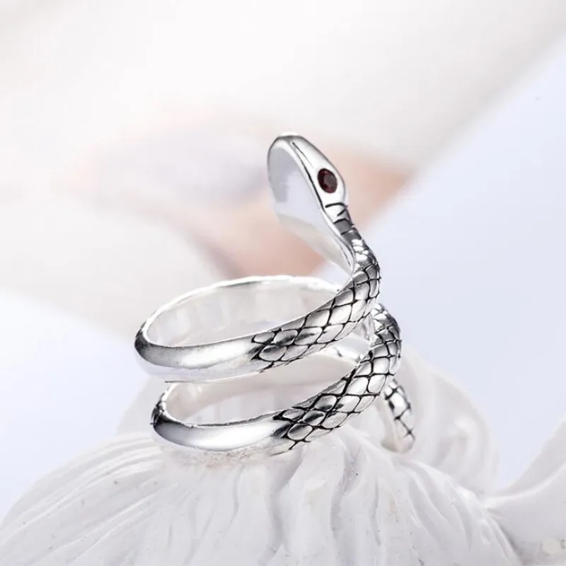 Кольцо из тайского серебра 925 пробы, со стереоскопическим изображением змеи, регулируемый размер