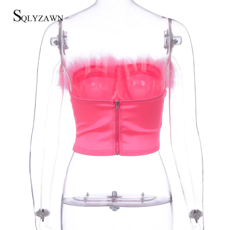 Меховой лоскутный топ с вырезом-лодочкой, женский сексуальный бюстгальтер на молнии без косточек, корейский розовый милый бюстье, Майка без бретелек, рубашка