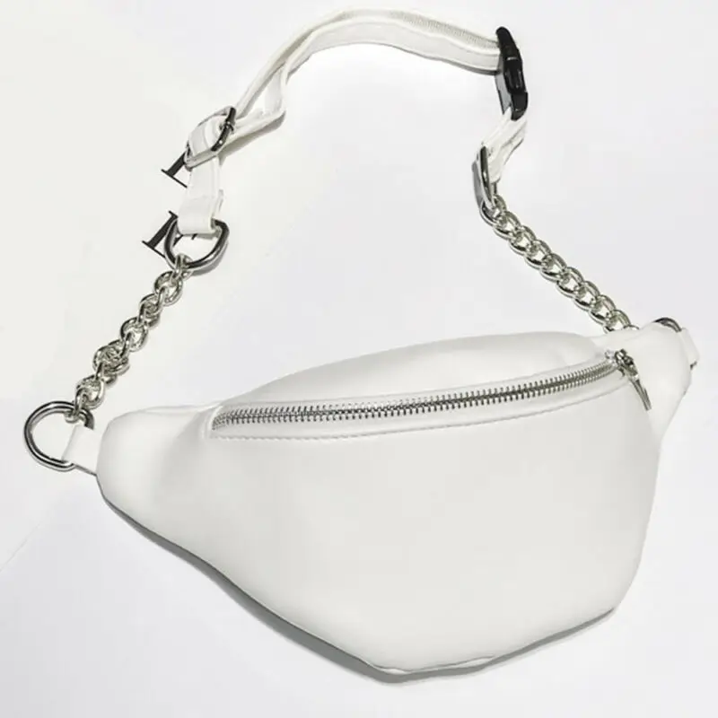 Сумка поясная женская из искусственной кожи, однотонная, черная, белая