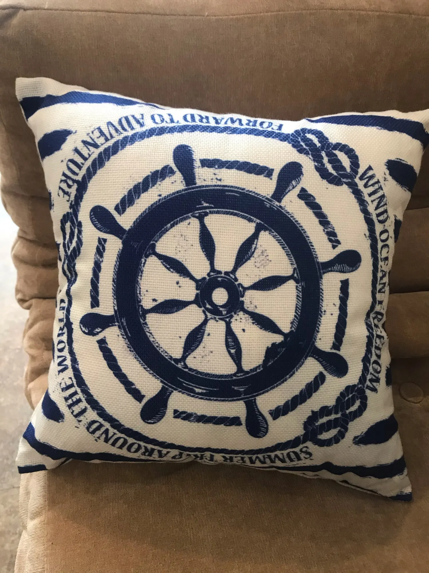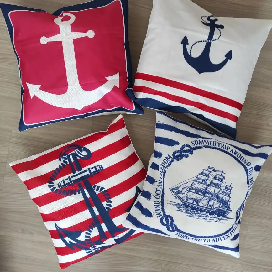 Наволочка с голубыми морскими звездами, Средиземное море, якорь и компас, домашние декоративные диванные подушки, льняная подушка, чехол