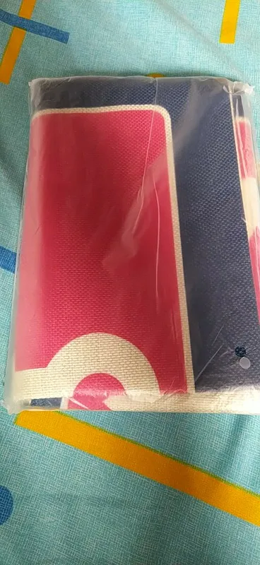 Товар кажется нормальным и красивым, как описано, но сложен таким образом, что разрушен. См. Белую линию складывания на картинке, которая украшает синий цвет в большом количестве точек.