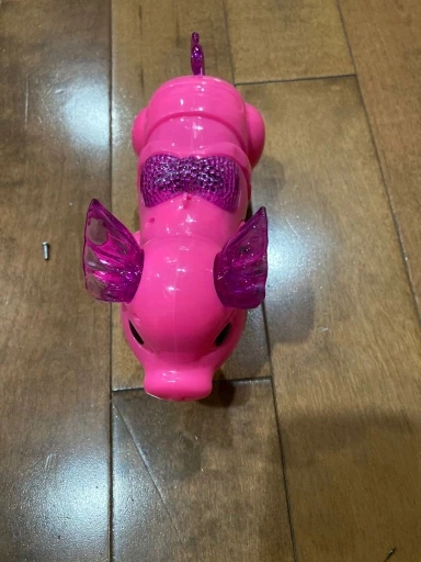 Супер свинка. Маленькая но милая. ушки, хвостик все пластиковое. плотное. В комплекте идет резинка которую привязывать к спинке( отверстие) Музыка бодрая, веселая. Свинка шустрая)) Светит разными огоньками лампочки на шеи под мордочкой. Товар и продавца рекомендую.