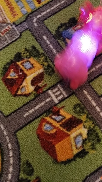 Игрушка работает, но она опасна для маленького мальчика, так как вы можете приклеивать палец между передними ножками игрушки и причинять достаточно повреждений, так как вы вращаетесь, как камера, и они ловят ваш палец, если ребенок вставляет его.