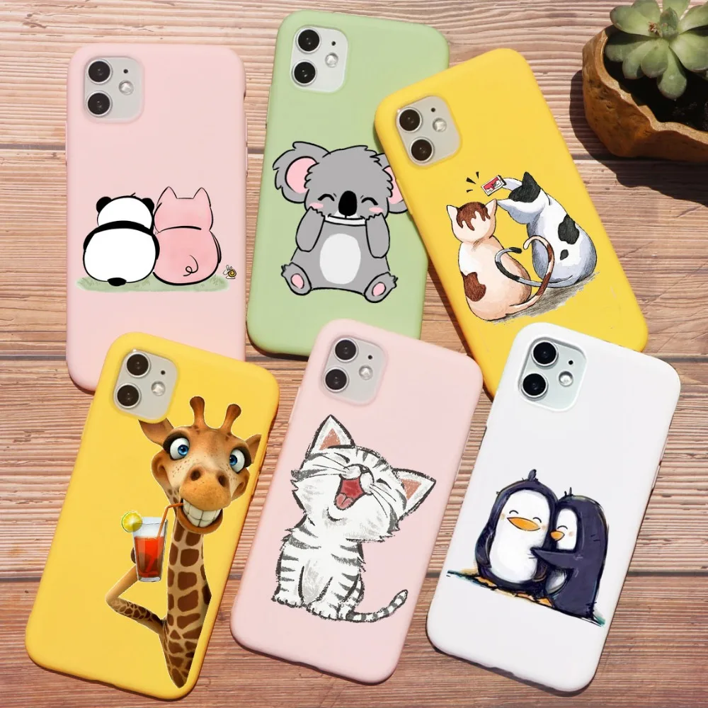 Чехол для iPhone 13 Pro, 12 Pro Max, 11 pro max, 7 plus, 6, 8 Plus, X, XS MAX, XR, ТПУ, с милыми рисунками кошек, собак, жирафов
