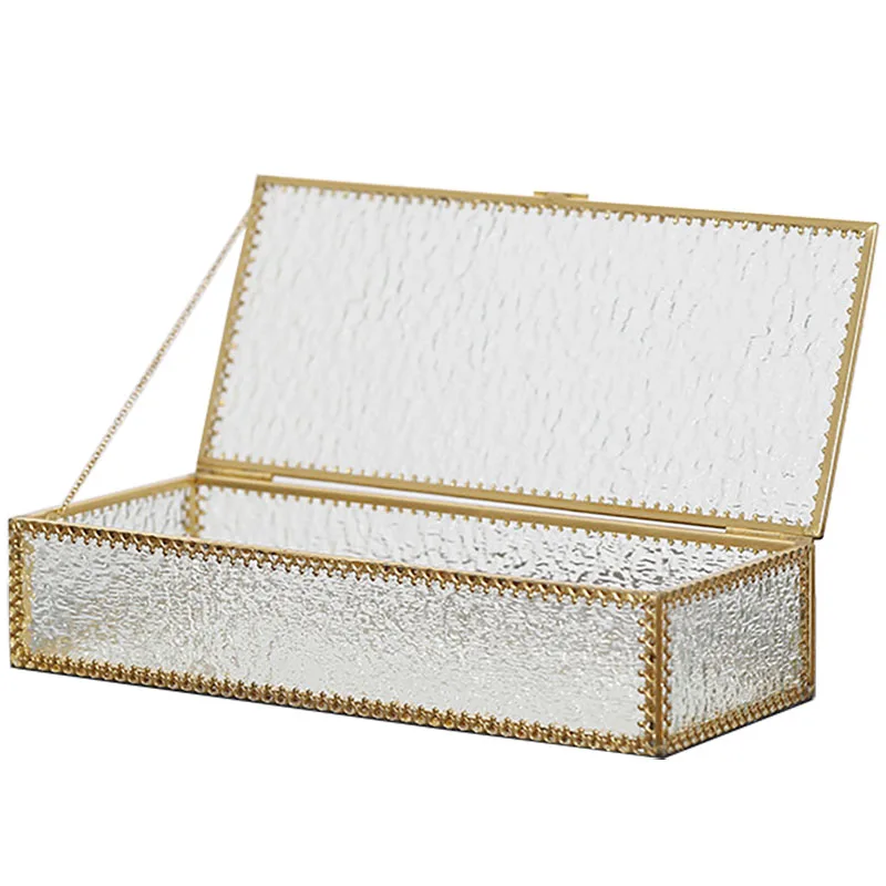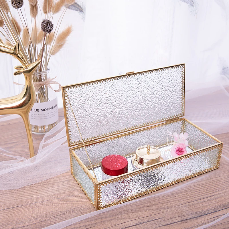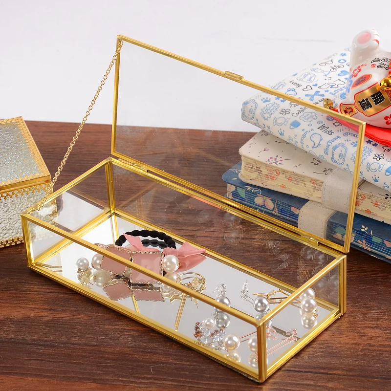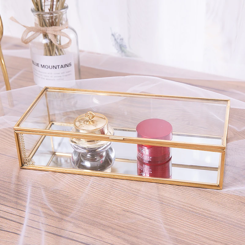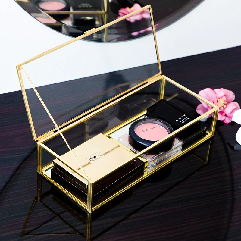 Шкатулка для ювелирных изделий, золотистый стеклянный органайзер для косметики, демонстрации часов, помады, серег, аксессуары для хранения, подарочная коробка