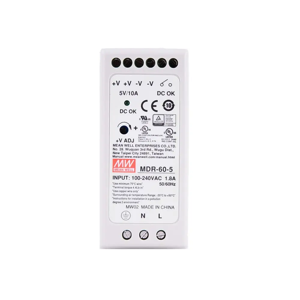 Оригинальный Промышленный источник питания Mean Well MDR-60-5 series DC 5V 10A 50W meanwell с одним выходом
