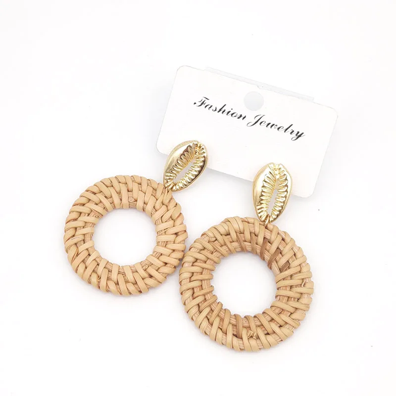 Серьги-Подвески ручной работы из ротанга в богемном стиле, вязаные серьги ручной работы из ротанга для женщин и девушек, оптовая продажа, 2019