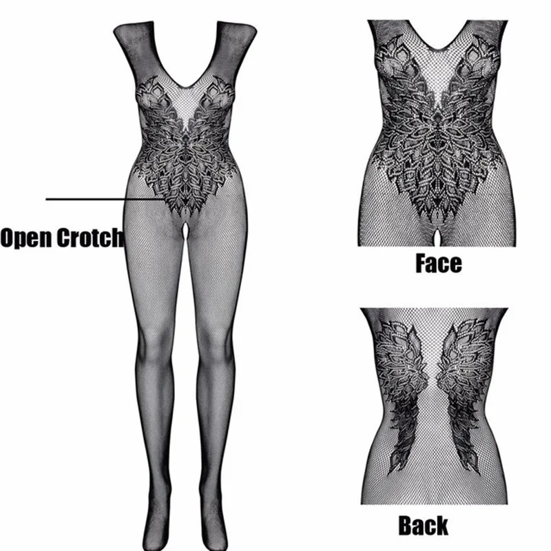 Боди женское прозрачное в сеточку, с открытой промежностью