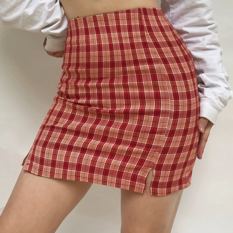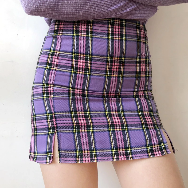 Юбка-карандаш Женская, летняя, клетчатая, фиолетовая, с разрезом, 8 цветов, B918, 2020