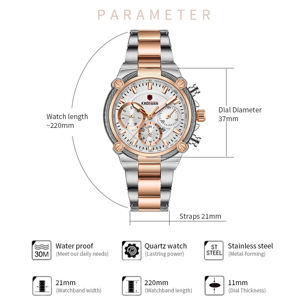 2021 KADEMAN новые женские часы бизнес Дата кварцевые женские часы ...
