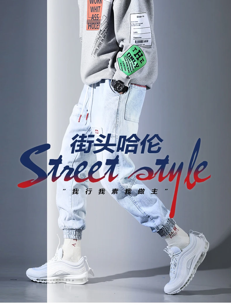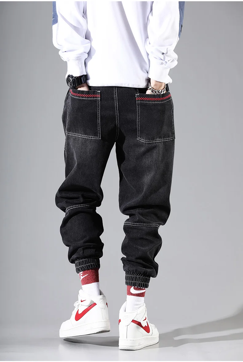 Хип-Хоп Уличная одежда, шаровары, джинсы, брюки, мужские свободные джоггеры, джинсовые повседневные спортивные штаны, корейские штаны длиной до щиколотки