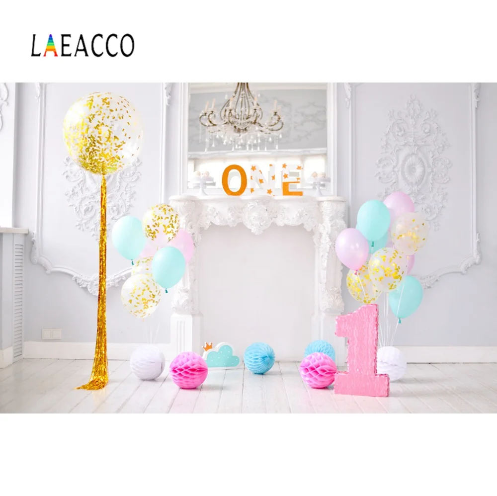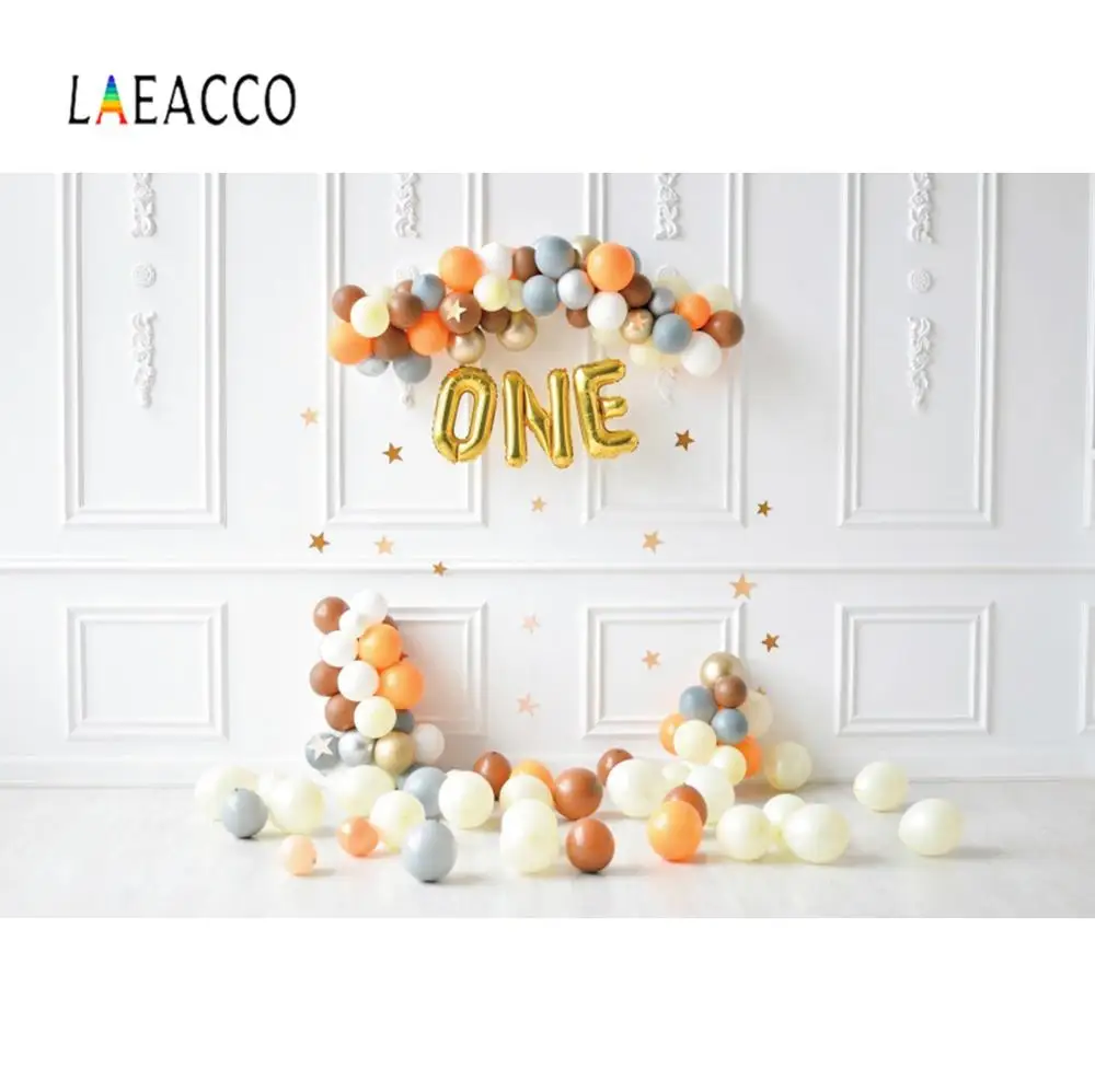 Laeacco фон для фотосъемки с первого дня рождения ребенка, серые шикарные настенные воздушные шары, праздник, семейные фотографии