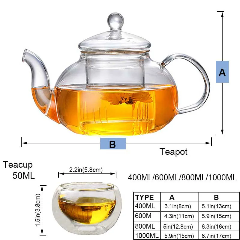 Термостойкий Стеклянный заварочный чайник, стеклянная чашка с двойными стенками, прозрачный заварочный чайник, чайник для чая, различные вкусы