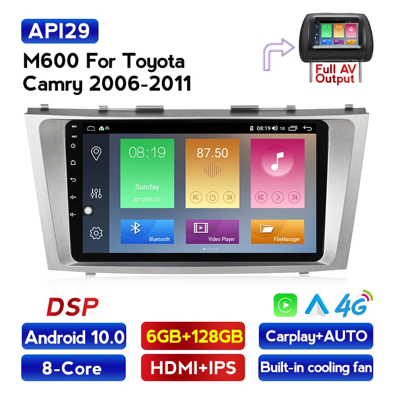 Автомобильный мультимедийный видеоплеер, Android 10,0, для Toyota Camry 7 40 50 2006-2011, Восьмиядерный процессор, GPS, радио, RDS, голосовое управление