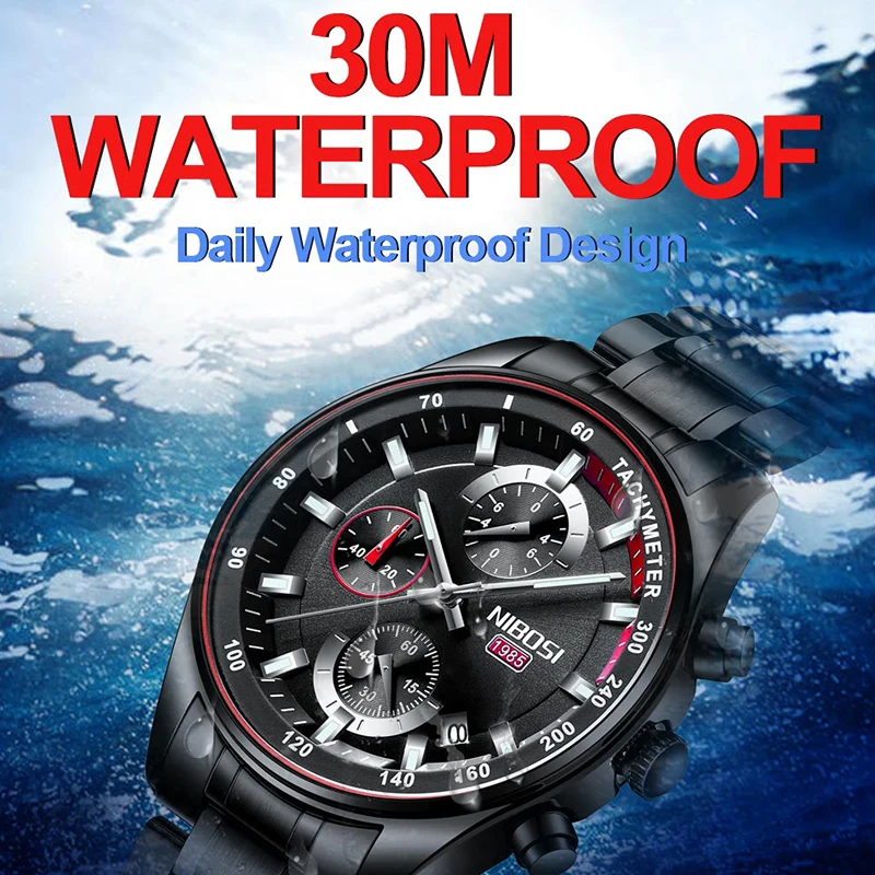 Часы наручные NIBOSI Мужские кварцевые, брендовые Роскошные модные спортивные водонепроницаемые, в деловом стиле, черные